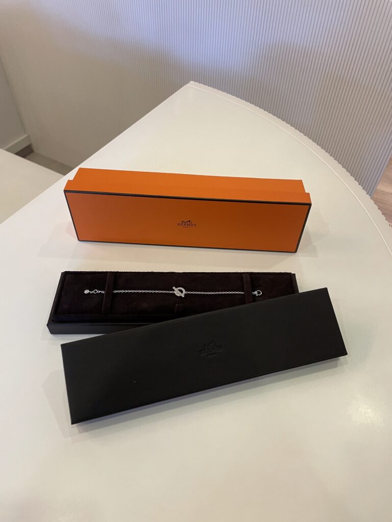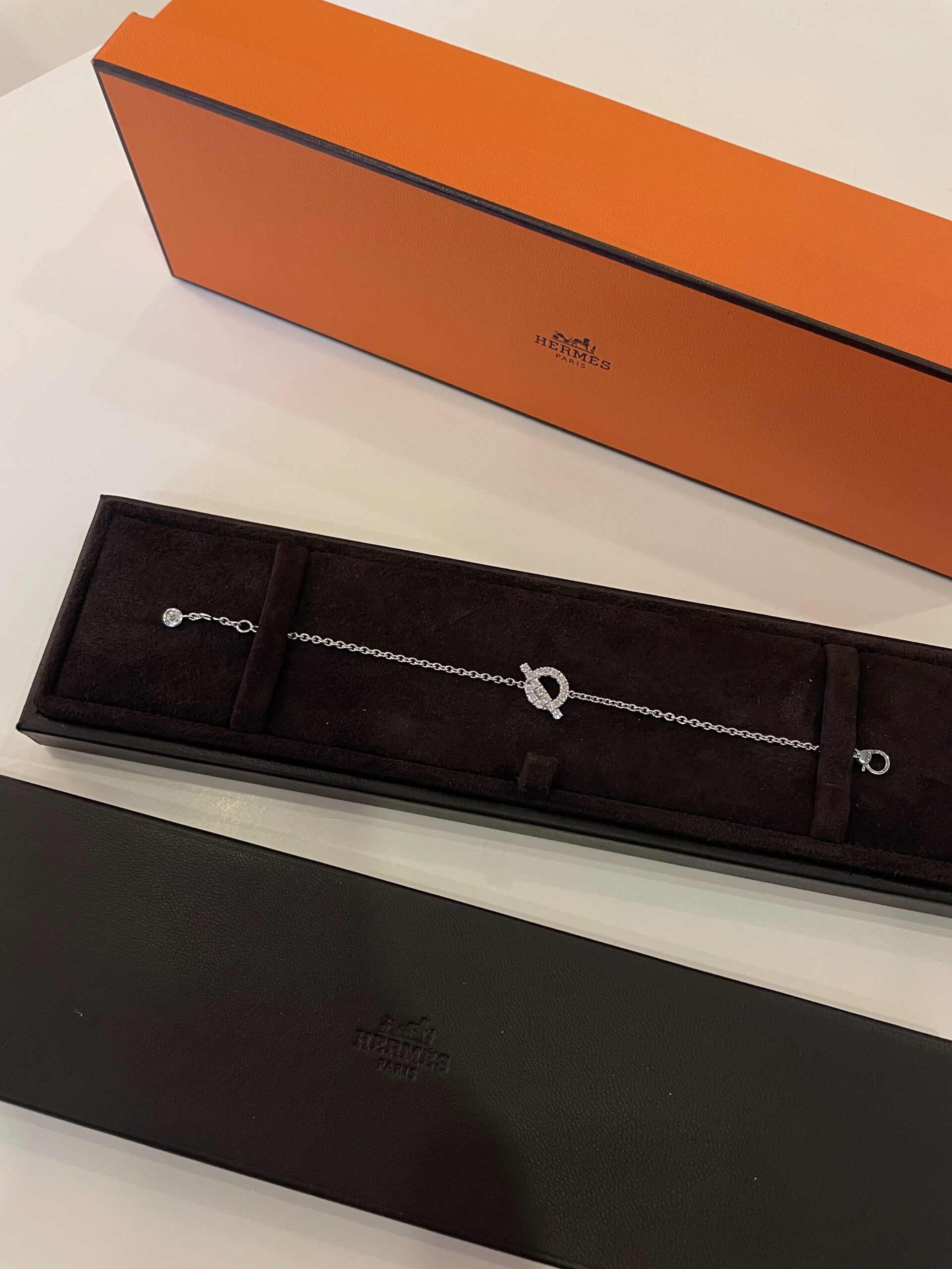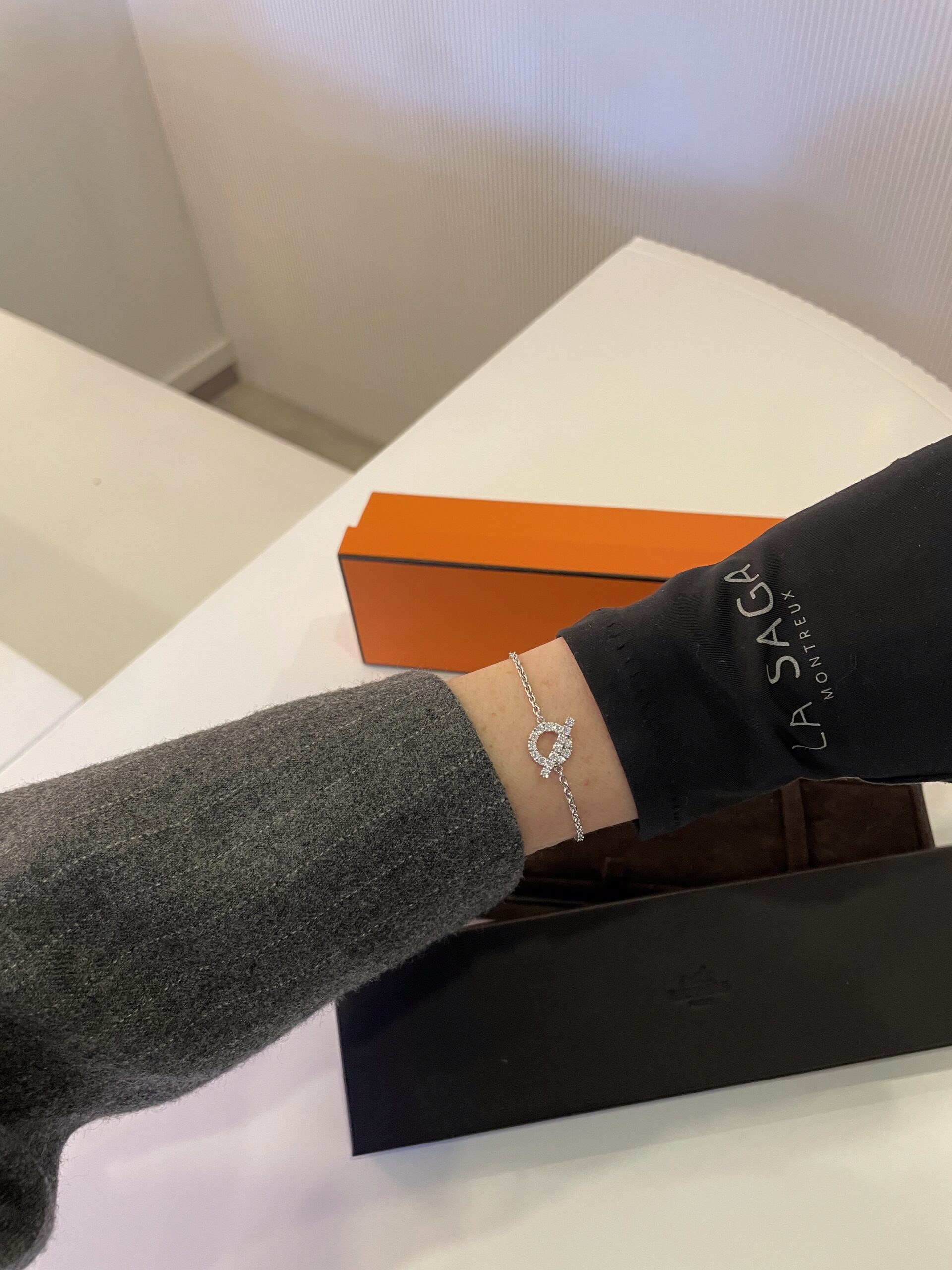 Bracelet Hermès Finesse en or blanc et diamants Mesures: Ouvert env. 17 cm Vendu avec écrin et boite