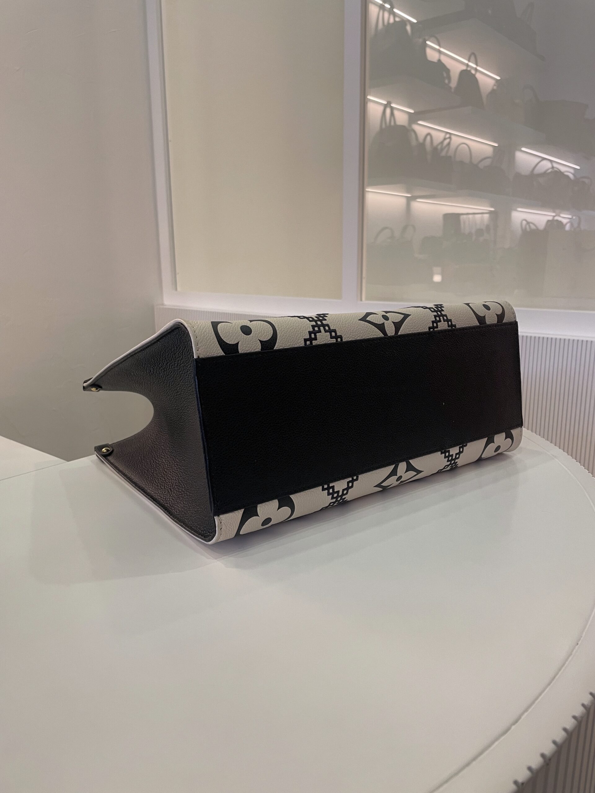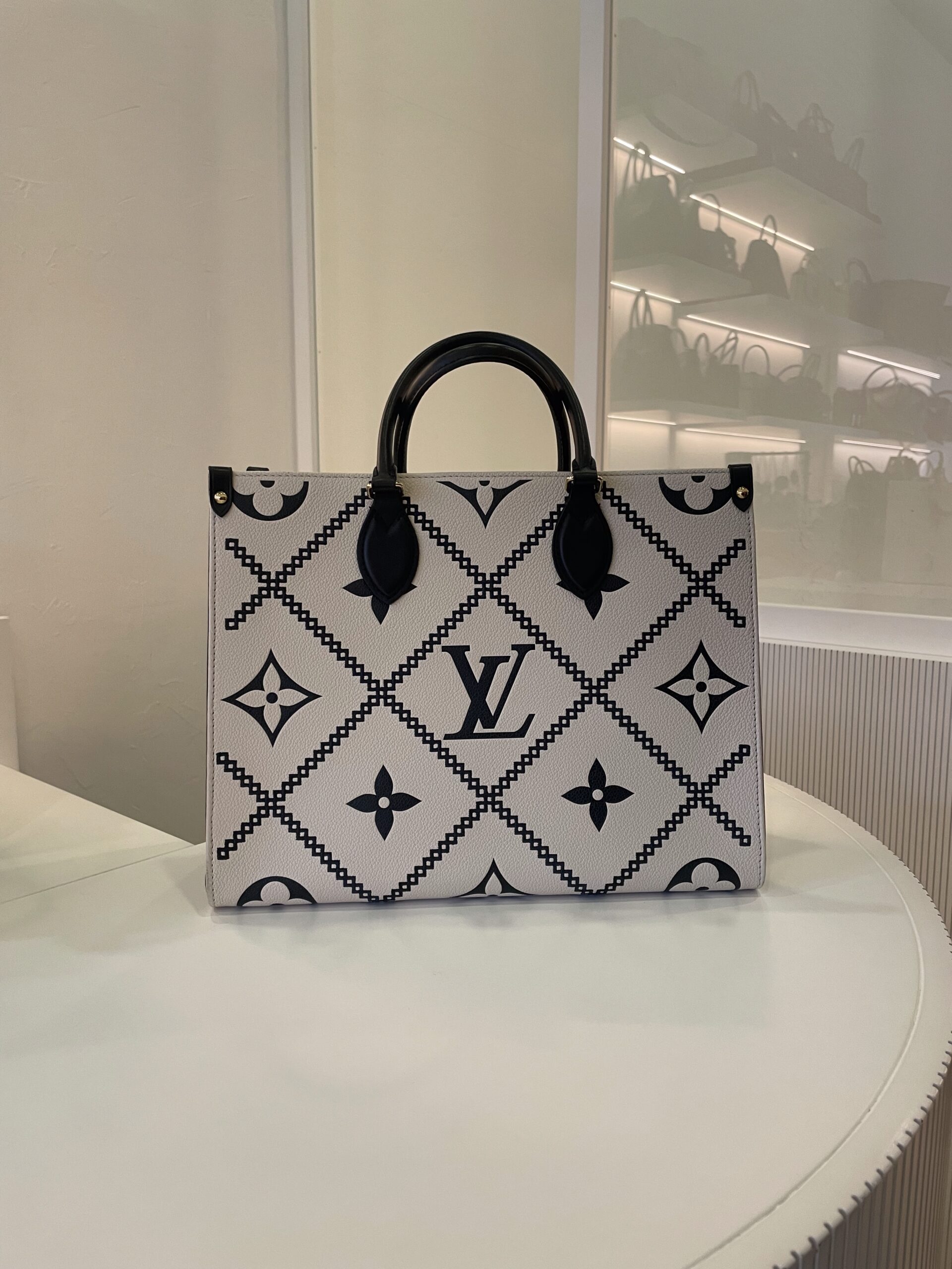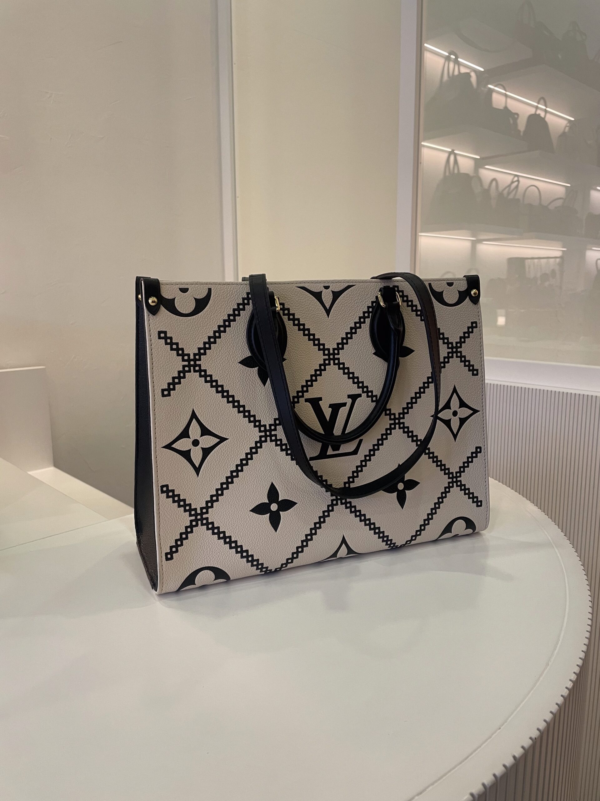 Cabas Louis Vuitton Onthego en cuir noir et blanc Vendu avec dustbag Dimensions : 34 x 27 x 14