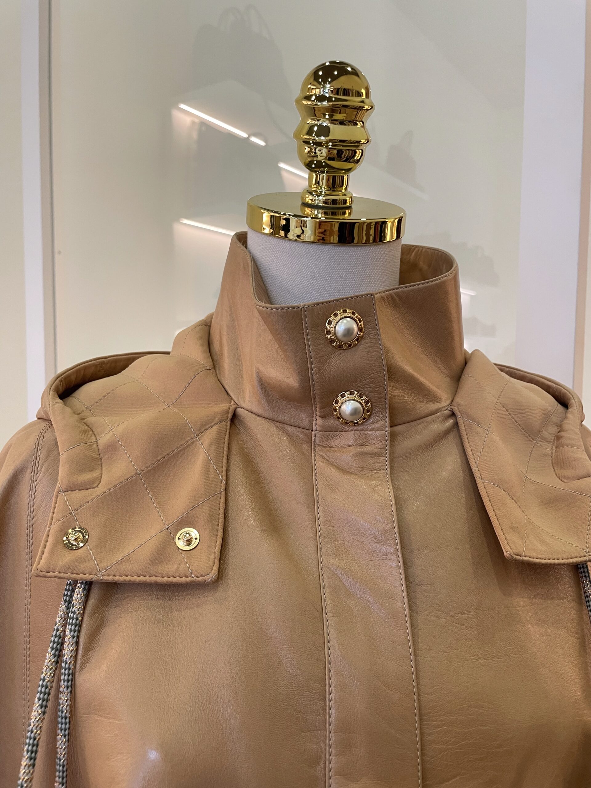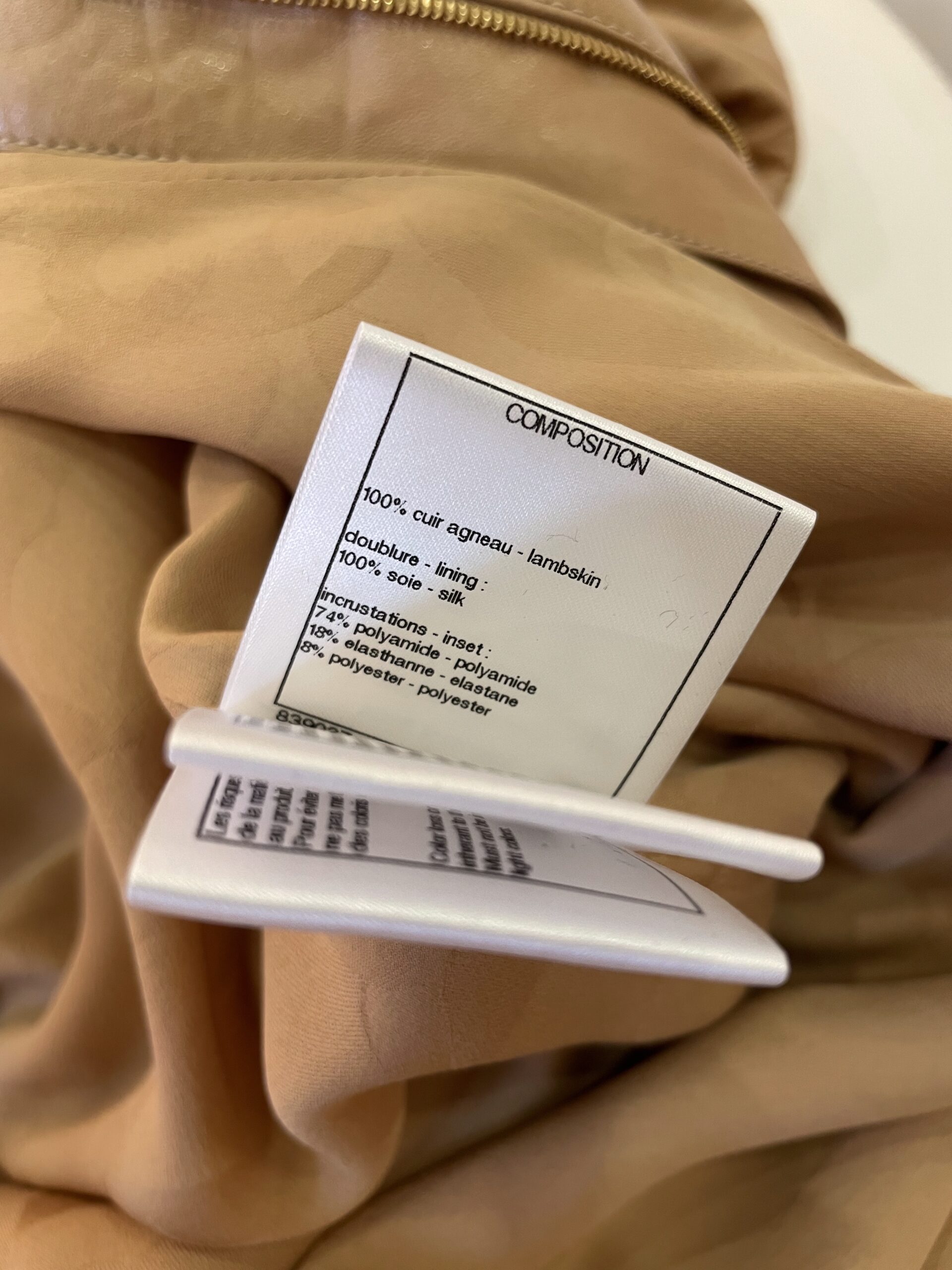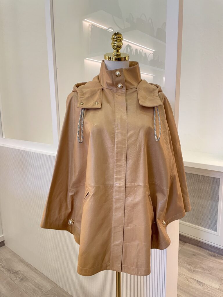 Cape Chanel en cuir d’agneau. Vendu avec housse et cintre
