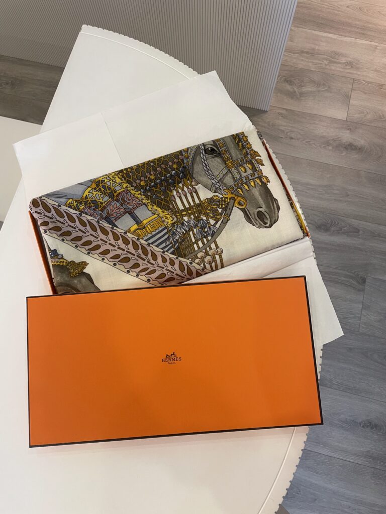 Carré Hermès en soie et cachemire | Mesures : 140×140 cm | Vendu avec la boîte