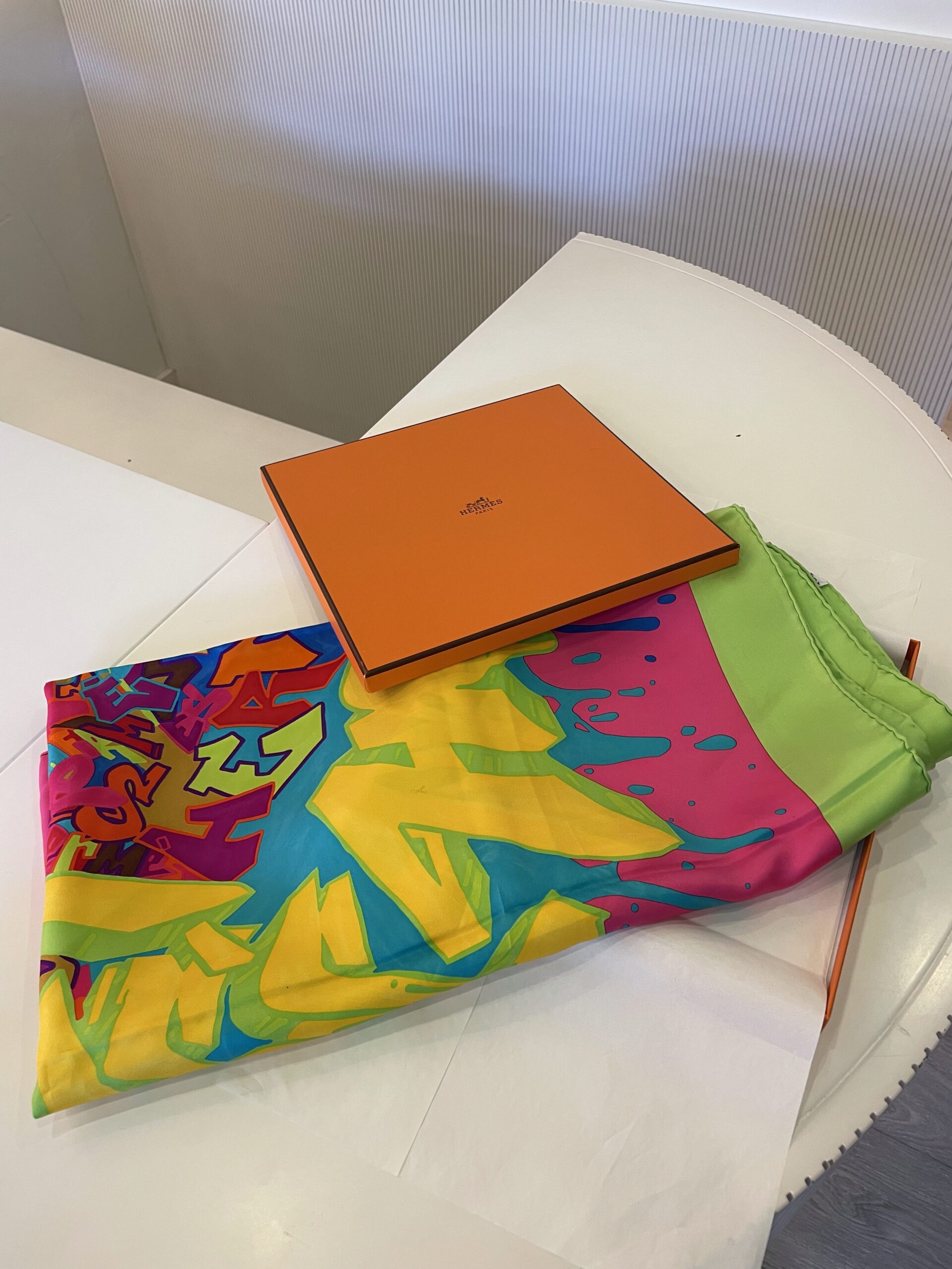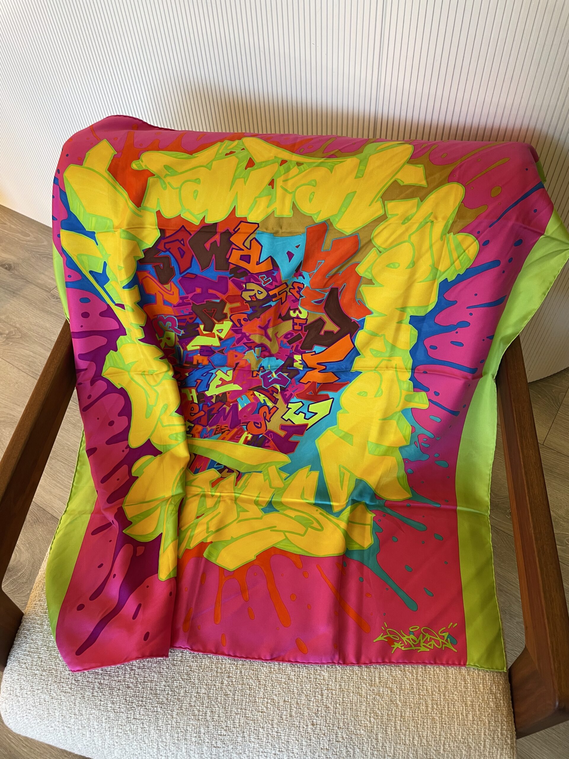 Foulard Hermès en soie Edition limitée graffiti par le graffeur Kongo Mesures 90×90 Vendu avec boite
