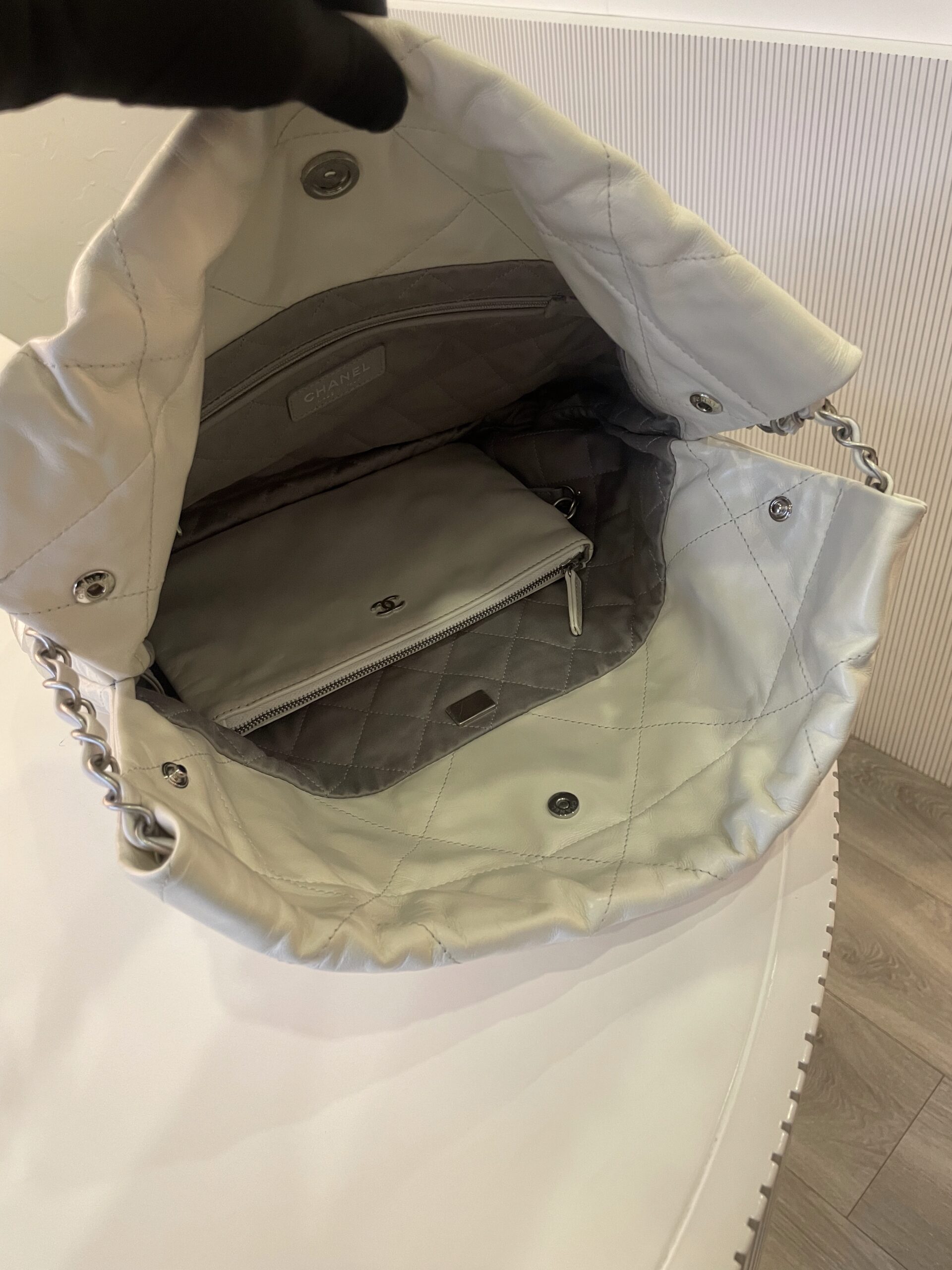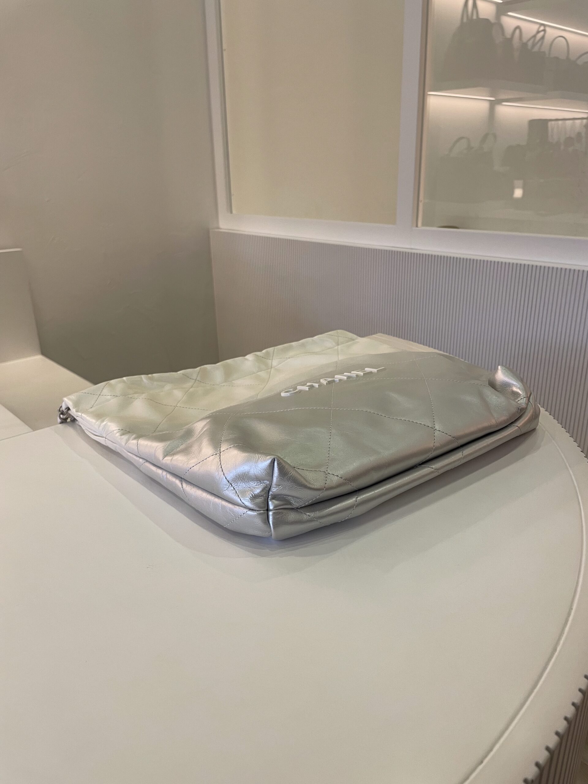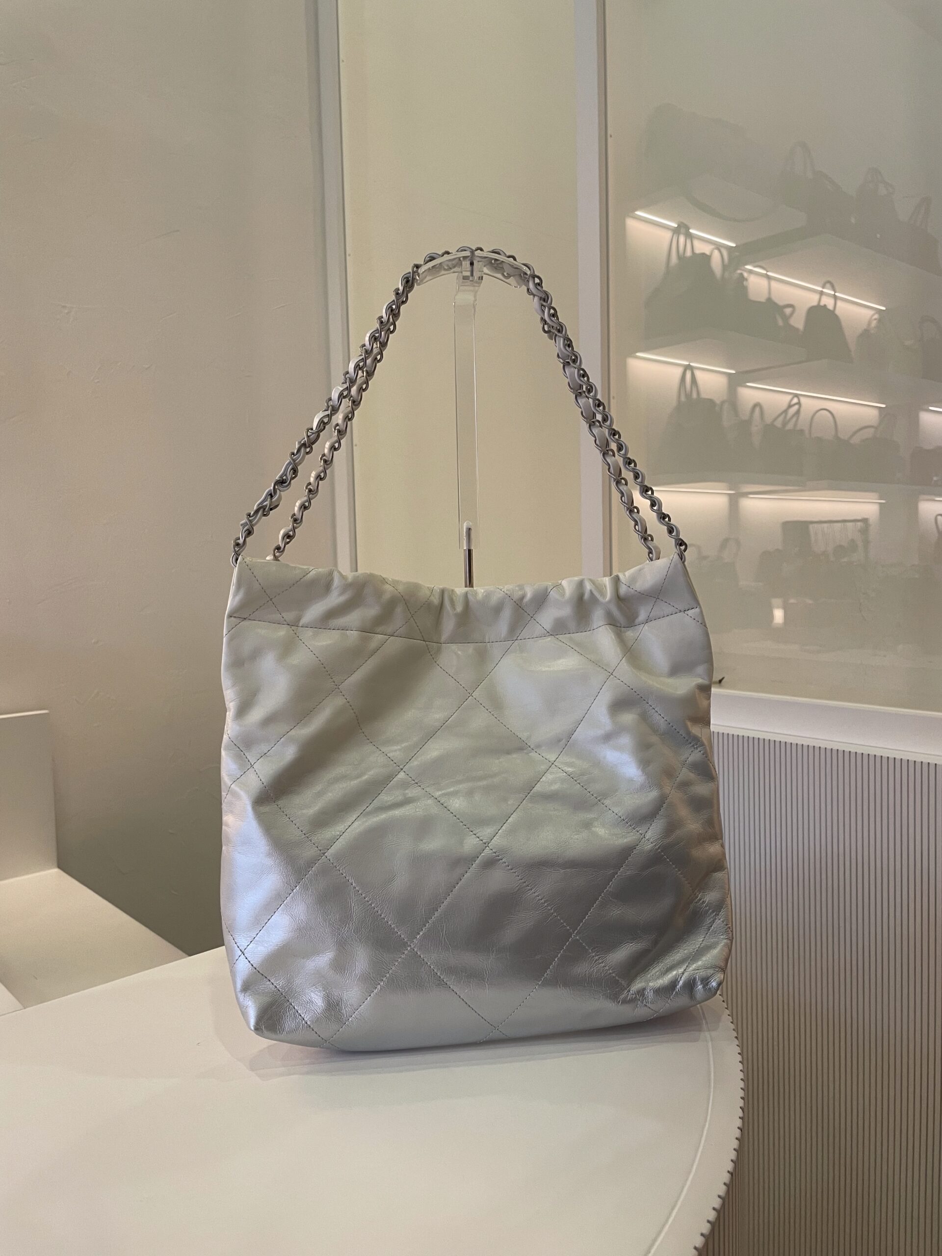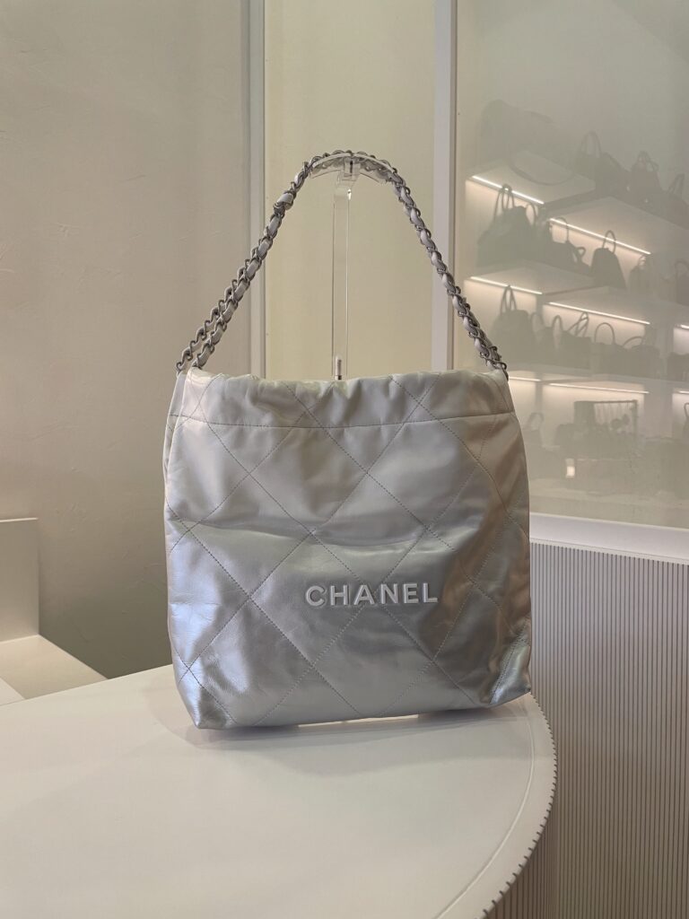 Sac Chanel 22 dégradé blanc et argenté Vendu avec dustbag Dimensions : 35 x 37 x 7