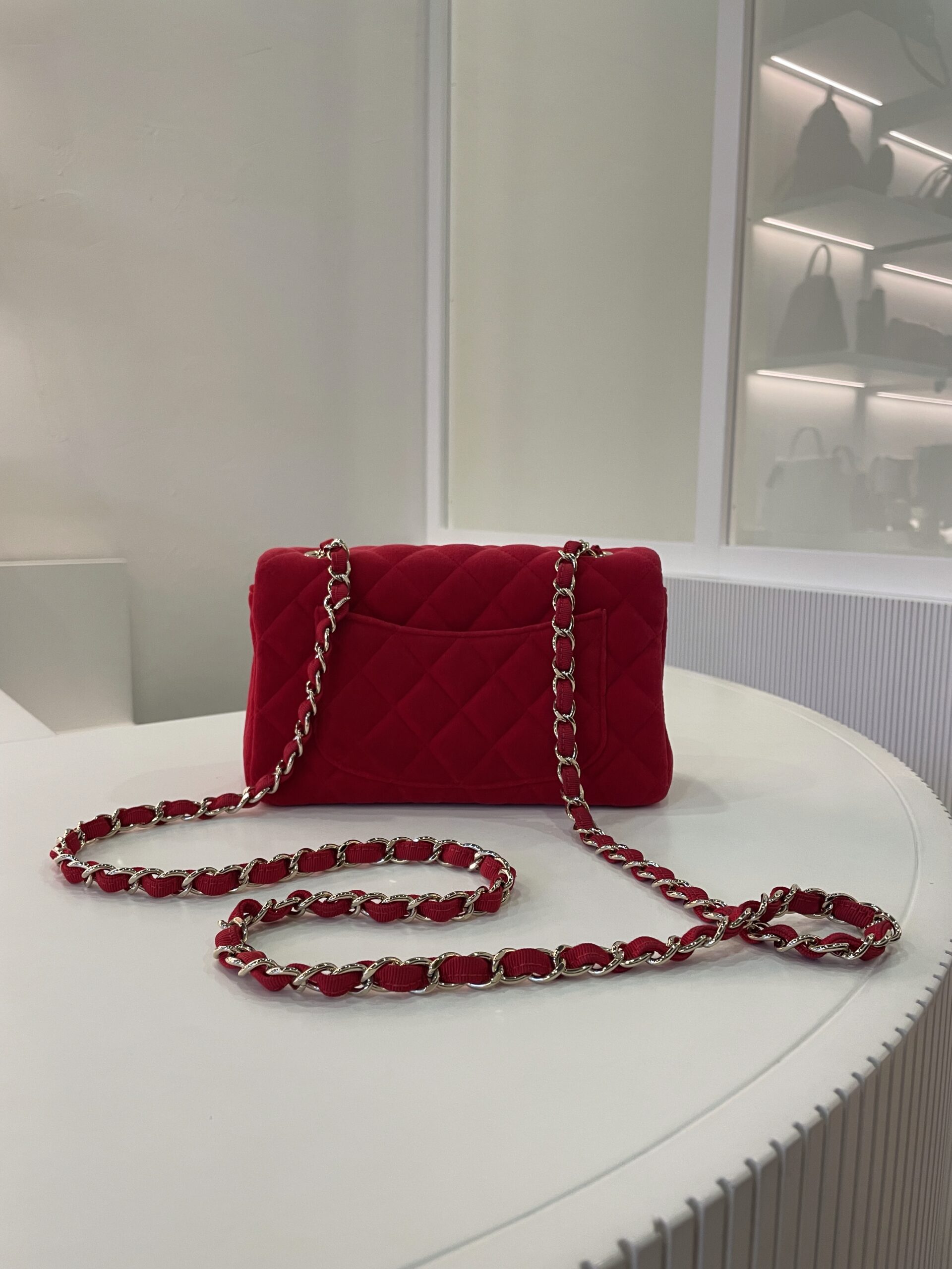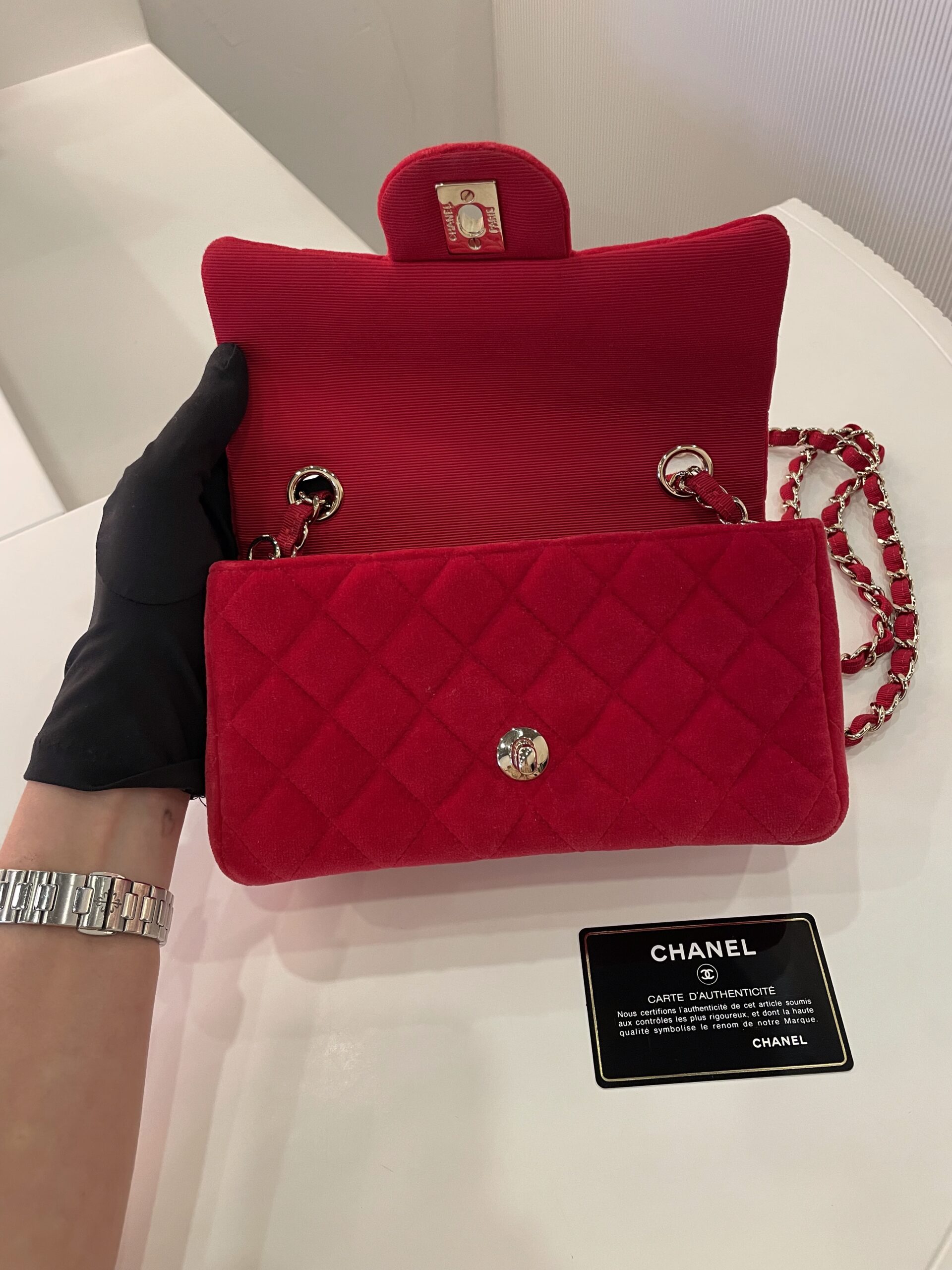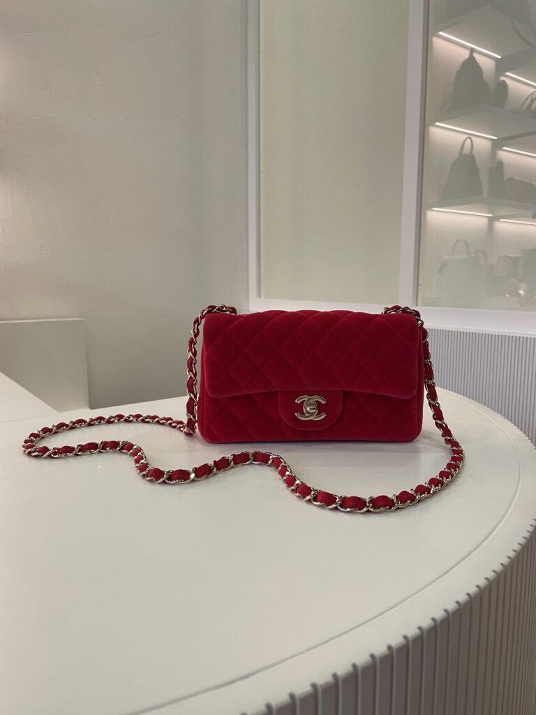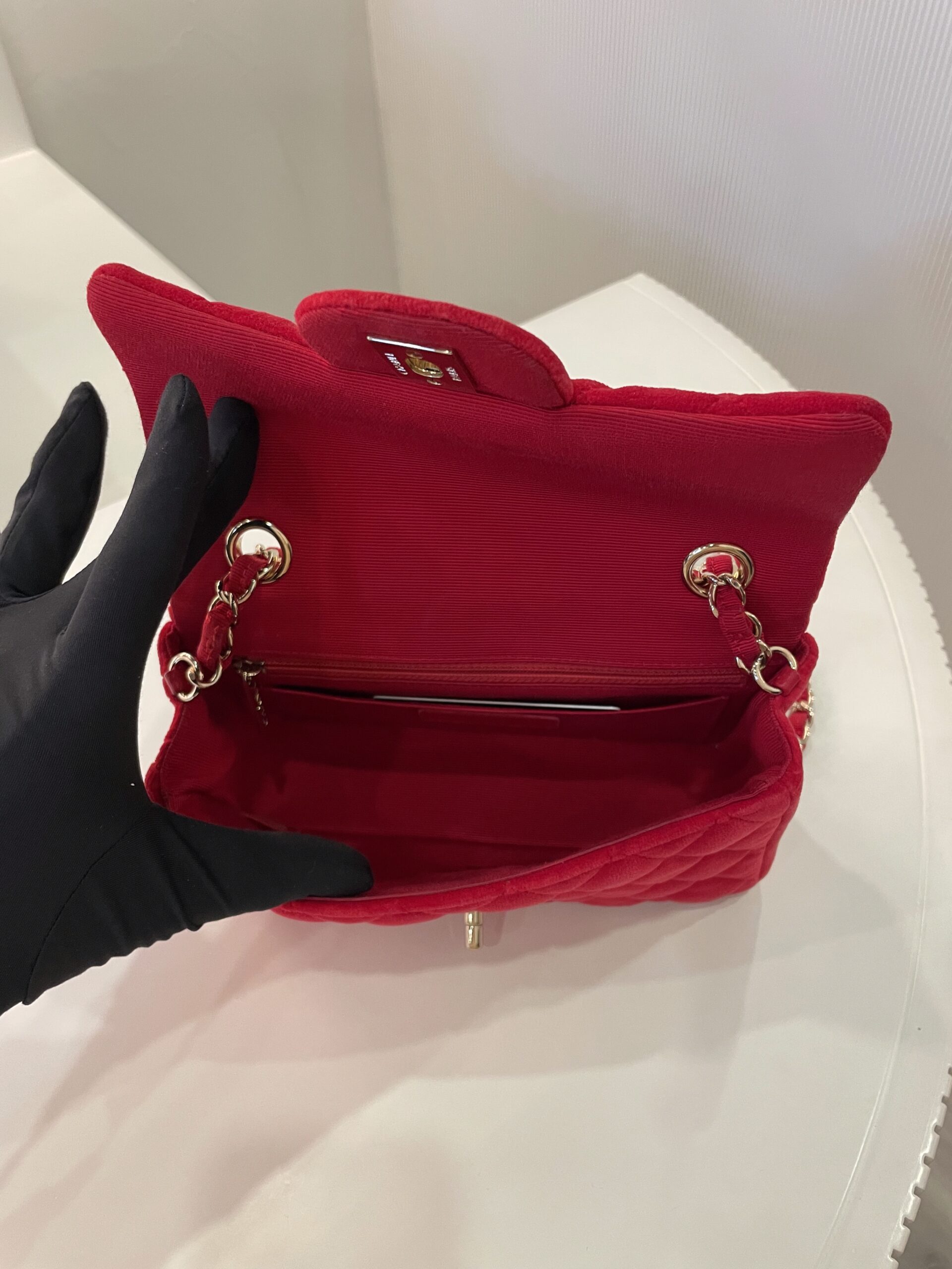 Sac Chanel mini flan velours Bijouterie champagne Mesures: 20x12x6