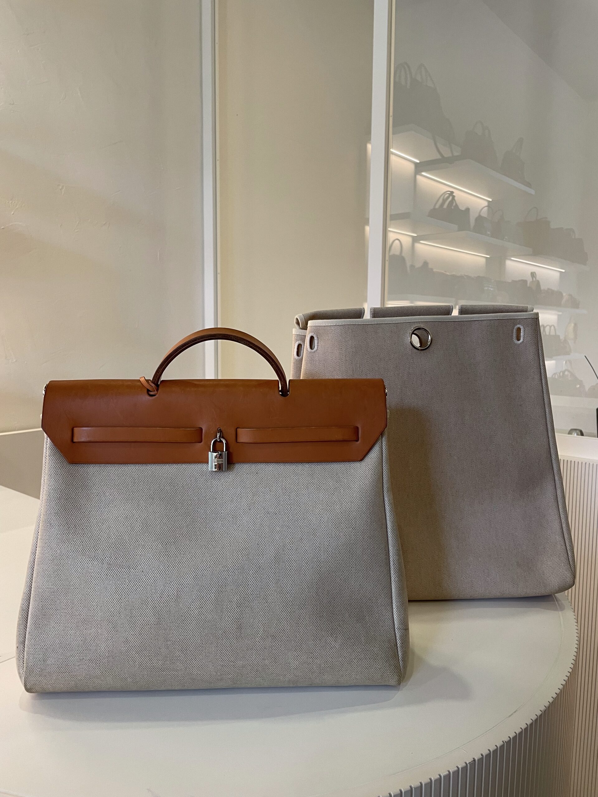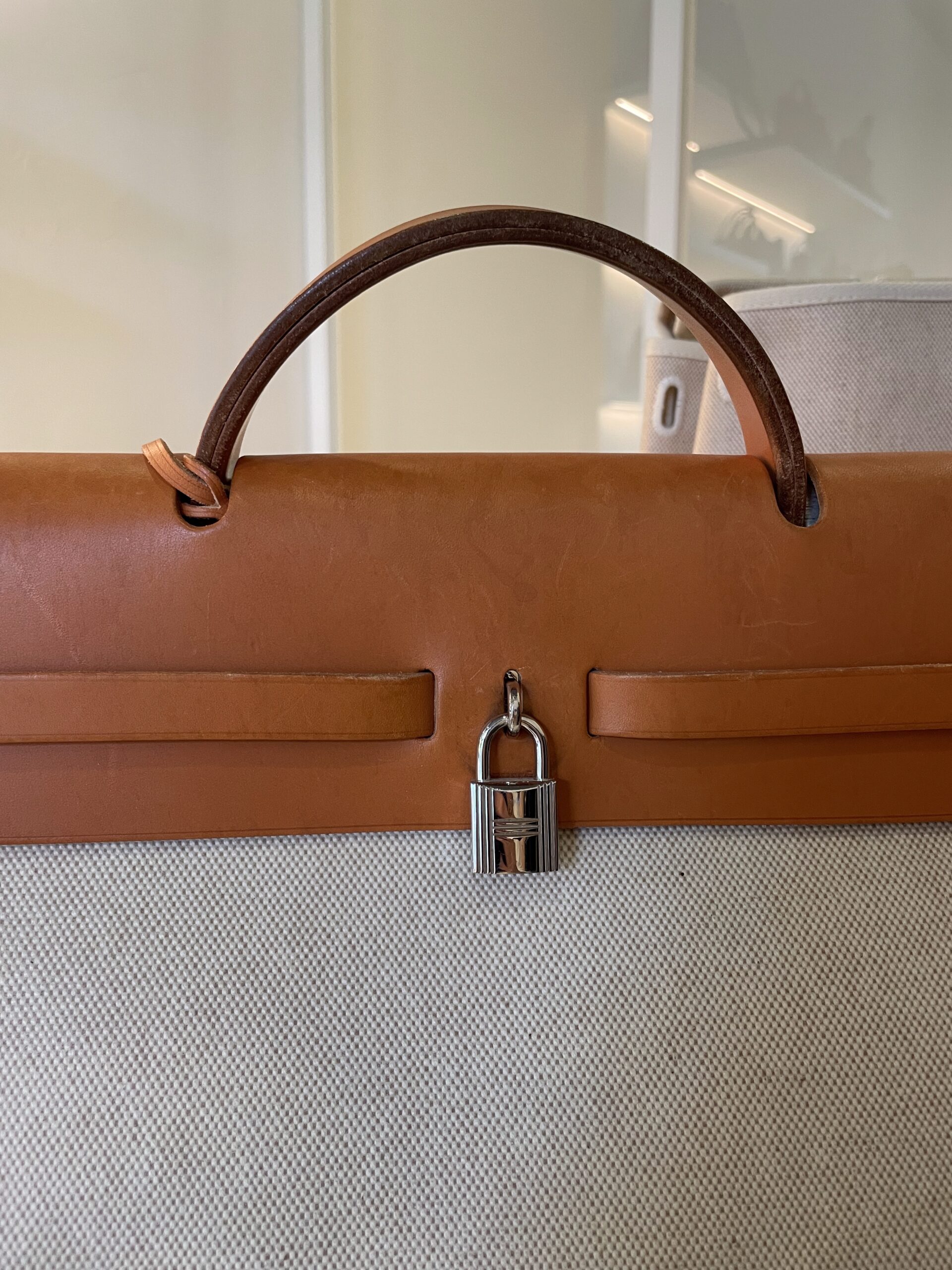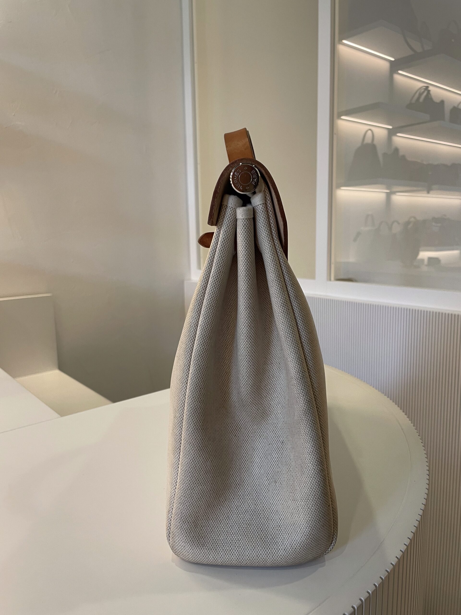 Sac Hermès Herbag Vendu avec clochette, cadenas, clés, dustbag Mesures: 39x32x13 Etat: tâché.