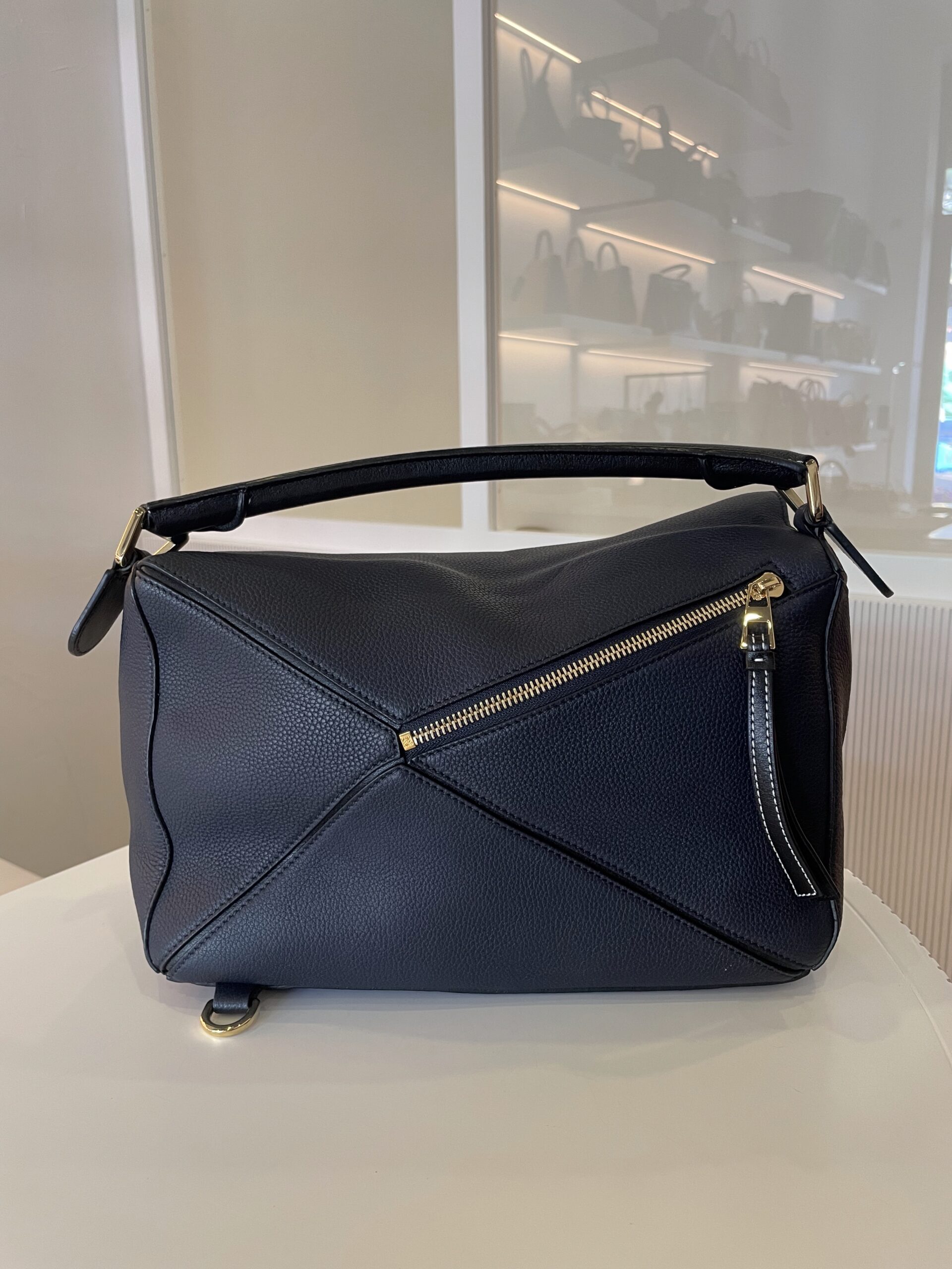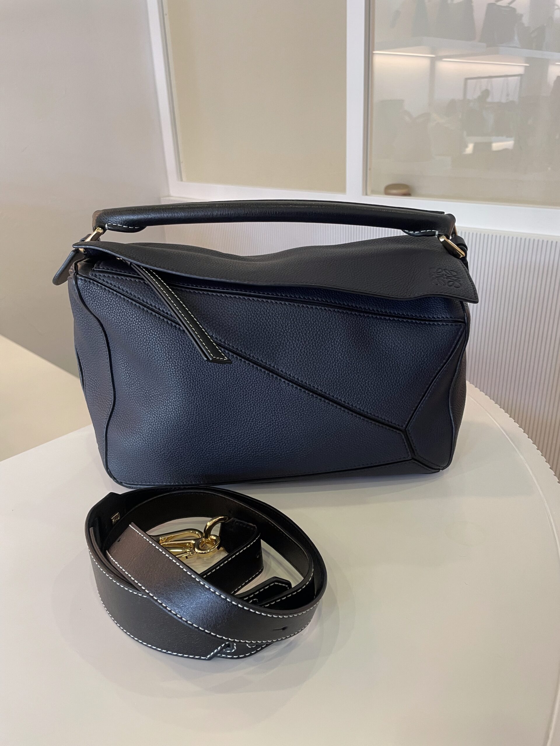 Sac Loewe Puzzle couleur bleu marine Dimensions : 29 x 19,5 x 14 cm Vendu avec bandoulière et dustbag