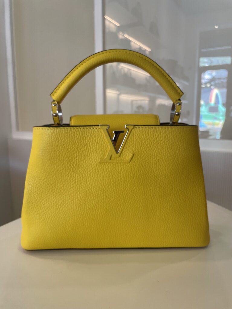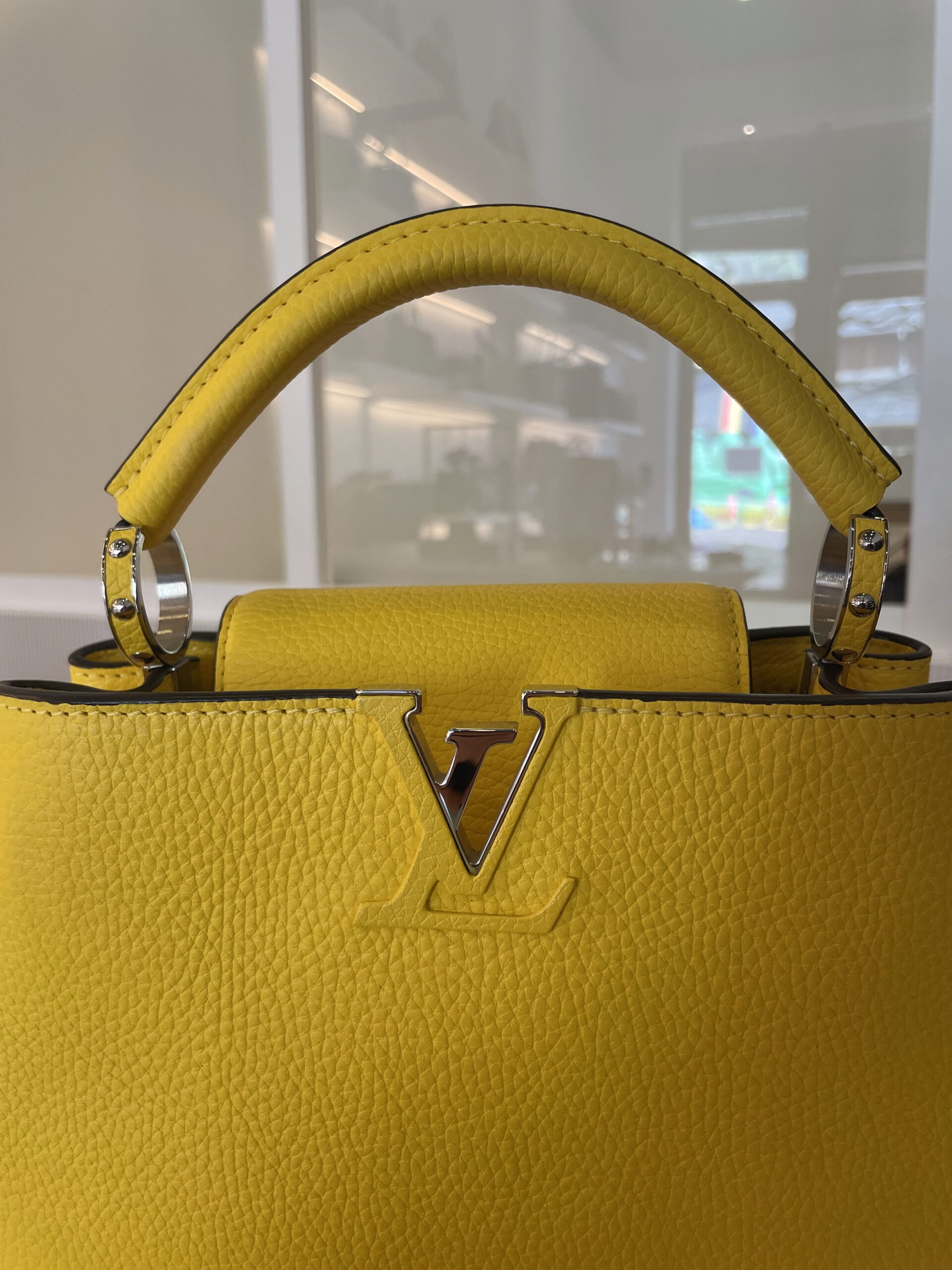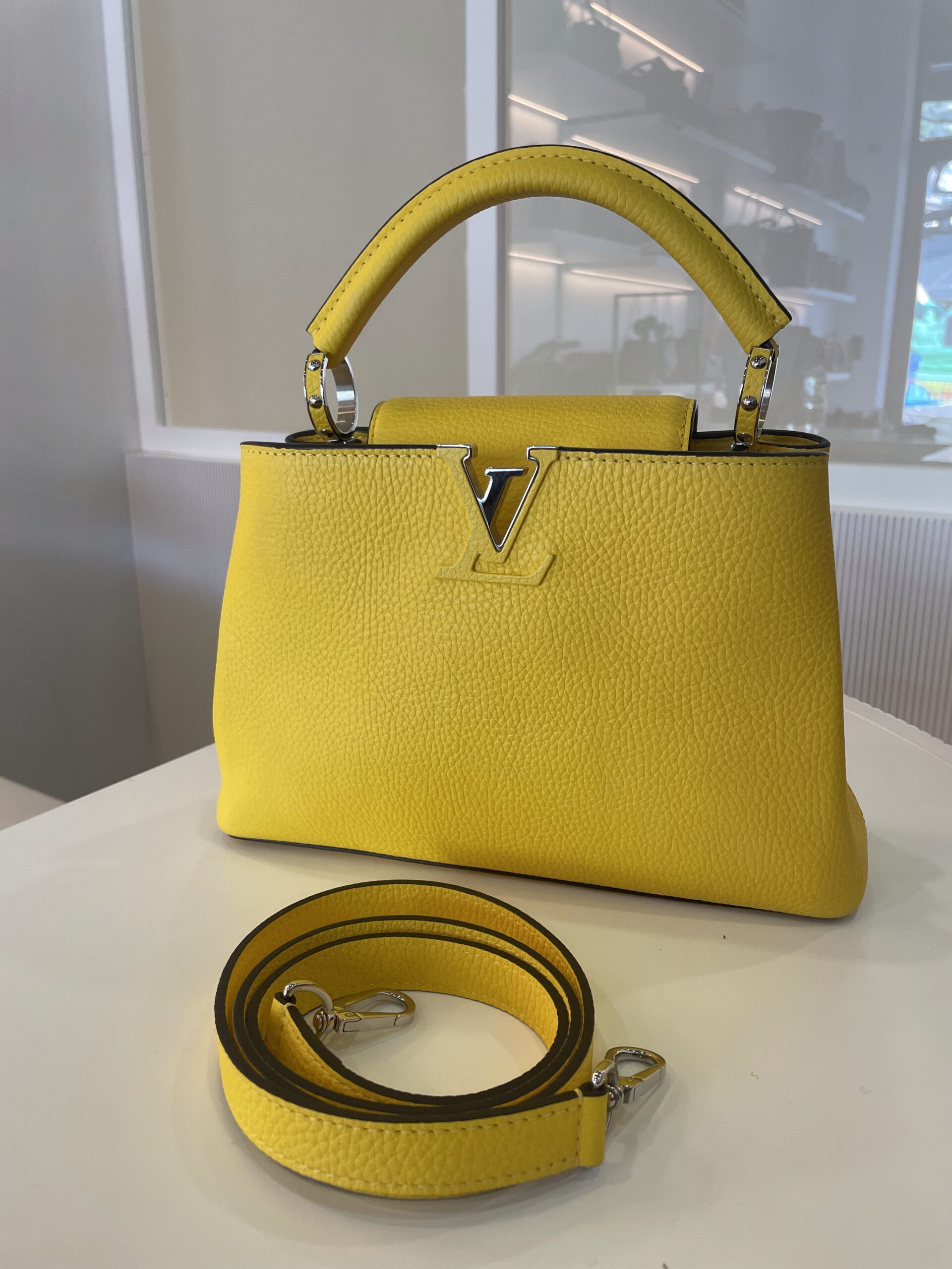 Sac Louis Vuitton Capucines jaune Dimensions : 27 x 18 x 9 cm Vendu avec dustbag et bandoulière